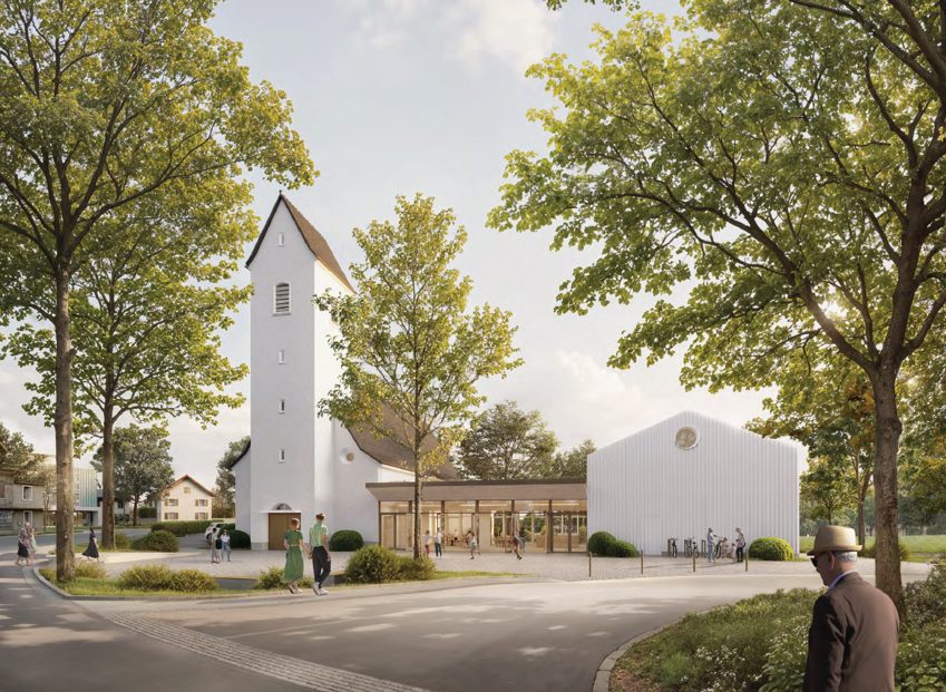Seit dem 1. Oktober 2025 ist die Heilsarmee Eigentümerin des ehemaligen Kirchgemeindehauses. Im Moment laufen die Planungen, um das Siegerprojekt (Bild) des Architekturbüros Bürge/Wendel umzusetzen. Bis es soweit ist, können die bestehenden Räumlichkeiten über das Büro der Heilsarmee Amriswil gemietet werden. 071 411 16 71.